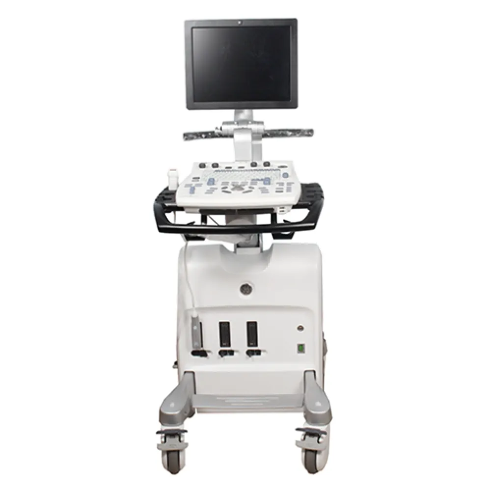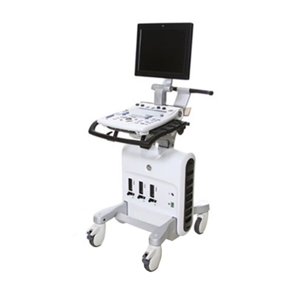The GE Vivid S5 is an Ultrasound system for Cardiovascular imaging. The Vivid S5 can be shared with other applications; Musculoskeletal, Abdominal, Pediatric, and Obstetrics. The Vivid S5 provides is known for its speed in producing quality images. The Ultrasound system offers an easy-to-maneuver ergonomic design, making for a more efficient, less tree situation. The GE Vivid S5 offers a flexible system. This allows the control panel and the keyboard to be moved around and adjusted when needed. The system offers imaging modes that include 2D Mode, Color Doppler Mode, M-Mode, PW/CW Doppler, and LVO contract. The system offers additional packages for Stress Echo for measuring the stress on a patient’s heart.