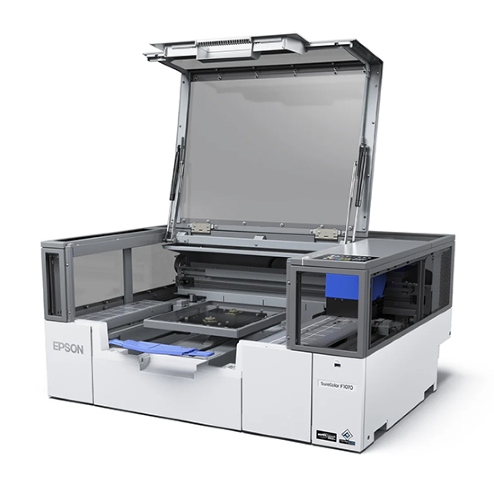 Open new doors for your business with the compact and versatile SureColor® F1070 Standard Edition printer. Purpose-built for both direct-to-garment (DTG) and DTFilm printing, this hybrid printer combines outstanding image quality, easy operation and incredibly flexible performance—all in one space-saving package. With DTFilm printing capability, go beyond traditional garment printing and transfer to a wider variety of materials, including uniquely shaped items. Featuring a PrecisionCore® Micro TFP® printhead with Nozzle Verification Technology and next-generation UltraChrome® DG2 Ink, the SureColor F1070 reliably delivers vibrant colors and incredible detail with amazing clarity. What’s more, the printer’s cartridge-free ink pack system helps reduce ink replacement frequency. Featuring automatic garment height adjustment, robust Epson® Garment Creator 2 software, easy user maintenance features to help reduce downtime and an intuitive design with a large 4.3" touchscreen interface, the innovative SureColor F1070 brings your creativity to life and will leave a lasting impression.