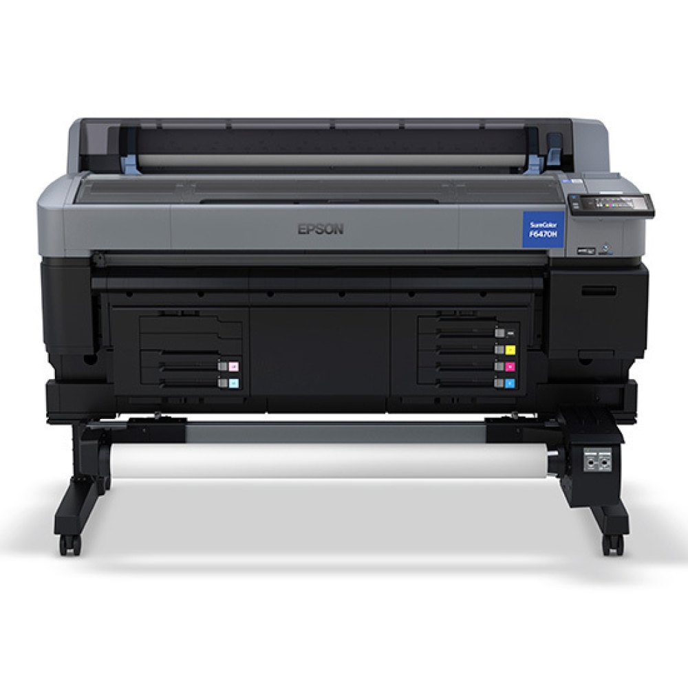 Maximize productivity for your business with the high-performance SureColor F6470H digital printer. This 44" dye-sublimation transfer printer prints high-quality 6-color output at speeds up to 400 ft2/hr1, ideal for photographic panels, promotional products, apparel, home décor, soft signage and more. The SureColor F6470H features a 1.33" PrecisionCore® MicroTFP printhead with Nozzle Verification Technology (NVT), for exceptional and consistent print quality. And, with an integrated ink pack system utilizing 1.6-liter UltraChrome® DS Ink packs, it continuously delivers astounding image quality with rich color saturation and contrast. This versatile printer is available in multiple ink configurations to meet your color needs: CMYK plus either Light Cyan and Light Magenta, Fluorescent Pink and Fluorescent Yellow, or Orange and Violet. Designed with ease of use in mind, it comes with a 4.3" touchscreen control panel, an easily accessible maintenance area, a built-in cutter for roll-to-sheet convenience and a media take-up reel system for unattended printing. Streamline your workflow with included powerful Epson Edge® Print software, featuring Adobe® PDF Print Engine, and live monitoring of your printer fleet with Epson® Cloud Solution PORT2. The SureColor F6470H features front-loading media and is optimized for Epson DS Transfer Paper, comprising Universal, Rigid Photo Optimized, Adhesive Textile and Multipurpose paper types. The printer comes with a 1-year limited onsite warranty, giving you peace of mind with Epson’s world-class service and support.